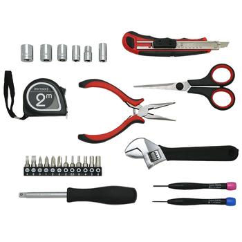 26 основных ручных инструментов, включая 2 м рулетки, 1/4 дюймовые разъемы для привода, держатель бит, гарантия 1 год